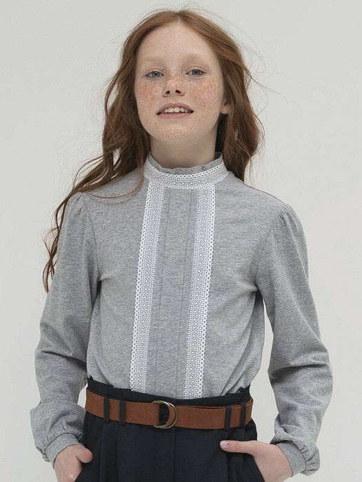 Кружево по бокам центральной складки спереди и по воротнику, а также лёгкая сборка рукава вносят немного романтики в классический стиль блузки.