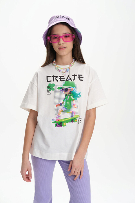 Pelican Футболка для девочек GFT3369/7 Молочный