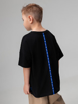 Футболка для мальчика прямого кроя умеренного объема. Уменьшена длина по сравнению с футболками Осень 25. Вырез горловины обработан эластичной рибаной — она прекрасно держит форму, не растягивается, при этом ребёнку удобно надевать и снимать футболку. Футболка с принтом и надписями. Перевод: Заряжен до 100%! -вежливость -спокойствие -счастье не забудь взять их с собой!