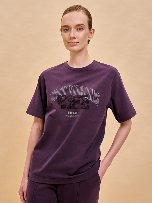 Женская футболка с принтом среднего объёма с коротким прямым рукавом. Вырез горловины обработан окантовкой. Изделие неприхотливо в уходе. Хлопковая футболка женская украшена принтом + актуальной аппликацией из мелких матовых страз. Шрифты в трендовых университском и футуристическом стилях. Надписи переводятся: «доброе утро, жизнь», «воскресенье», «я расслабляюсь, я отпускаю всё, моя жизнь течёт своим чередом». Принт и аппликация устойчивые, прочные, хорошо переносят многочисленные стирки. В составе ткани преобладает высококачественный хлопок — майка мягкая, воздухопроницаемая, приятная на ощупь. Футболка с надписями выполнена в трендовых и при этом универсальных цветах, которые отлично сочетаются с различными брюками, шортами. Футболки с принтом женские подходят также девушкам, девочкам-подросткам. Хлопковая футболка идеальна для любого времени года, её можно носить как летом, так и в холодное время года в качестве среднего слоя одежды, а также на спорт. Помните о правильном уходе за изделием: рекомендуется стирать при температуре не выше 30 °C, без предварительного замачивания, с изнанки. Это поможет сохранить качество и цвет футболки на длительное время.