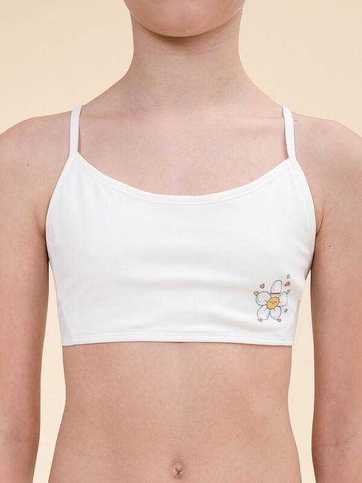 Если вы хотите купить своему ребёнку действительно качественное, красивое и комфортное нижнее бельё, представляем вам наш укороченный топ для девочки. Бра выполнено из ткани с высоким содержанием хлопка. Топ мягкий, воздухопроницаемое — кожа ребёнка отлично дышит. Эластан в составе ткани обеспечивает модели прекрасную форму на протяжении долгого времени. Благодаря качественному материалу и правильному крою детский топ идеально садится по телу и дарит ребёнку комфорт на протяжении всего дня. Боковые швы смещены к переду и оформлены как декоративные рельефы. Тонкие мягкие бретели перекрещиваются на спинке и не сползают, исключают трение и раздражение. По низу и проймам окантовка из пайпинга в тон изделия, благодаря чему они не растягиваются. Модель нежного молочного цвета украшает небольшой принт в виде милой ромашки и сердечек по переду. Принт мягкий и устойчивый, отлично переносит стирки. В линейке представлены следующие размеры: 7 (122); 8 (128); 9 (134); 10 (140); 11 (146). Кроп топ детский отлично подходит для носки под одеждой — идеальный выбор белья для девочки младшего школьного возраста и девочки-подростка. Топ можно носить круглый год: летом, весной и осенью (демисезон), зимой. Стильный топ — прекрасный подарок дочери, внучке или сестре на любой праздник. Выбирайте нужный размер по таблице размеров на фото. Цвет товара на экране вашего устройства может отличаться от цвета изделия вживую.  Товар возврату и обмену не подлежит.