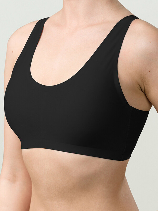 Женский бельевой топ. Изготовлен по бесшовной технологии с минимумом швов. Боковые плоские раздвижные швы, края горловины, проймы и низа изделия подогнуты и приклеены. Топ максимально невидим под одеждой, не натирает, комфортно сидит на теле. Съемные формованные чашки поддерживают грудь и создают красивый объем. Продуманное расположение регулируемых бретелей по спинке делают топ комфортным в носке, лямки не спадают с плеч. Этот топ станет идеальным функциональным нижнем бельем на каждый день.