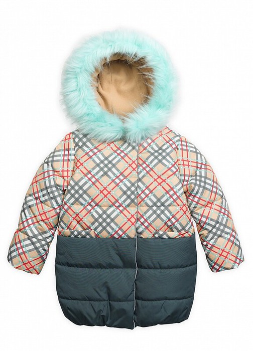 Пальто для девочек. Рекомендованный температурный режим: не ниже -15°С. Силуэт "овал"- ХИТ! Втачной капюшон, совмещенный с воротником. Меховая опушка съемная. Боковые карманы с листочкой вшиты в горизонтальный подрез переда. Низ изделия присобран на эластичную резину.