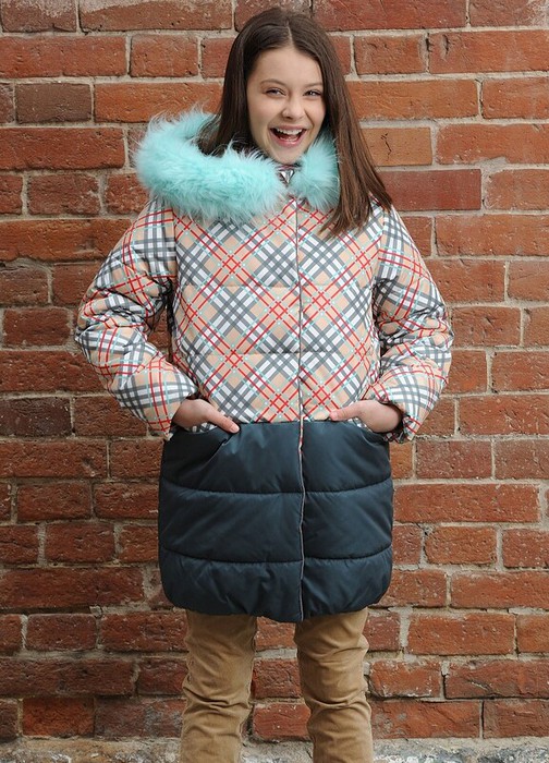 Пальто для девочек.Рекомендованный температурный режим: не ниже -15°С.  Силуэт "овал"- ХИТ! Втачной капюшон, совмещенный с воротником. Меховая опушка съемная. Боковые карманы с листочкой вшиты в горизонтальный подрез переда. Низ изделия присобран на эластичную резину.