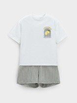 Стильная и уютная пижама для мальчика. В составе ткани 100% хлопка — идеально для детской одежды! Модель приятна на ощупь, прекрасно пропускает воздух, позволяя коже ребёнка дышать. При этом в пижаме из хлопка ребёнку будет уютно, даже если он сбросит одеяло. Всё это обеспечивает комфортный и качественный сон. Футболка и  удлиненные шорты, плечо спущено, рукава широкие и свободные — пижама на мальчика очень удобна для сна. Широкая и мягкая резинка в поясе не перекручивается и не давит. Отделка горловины из эластичной рибаны — она не растягивается, ребёнку удобно надевать и снимать пижаму. Перевод надписей: "создай себе настроение", "создай своего игрока", "творец", "игра". Хлопковый комплект идеален для сна и отдыха дома — прекрасный выбор для вашего ребёнка! Пижама с шортами для мальчика подходит для круглогодичного использования. Домашний комплект — замечательный подарок сыну, внуку, брату на любой праздник. Выбирайте нужный размер по таблице размеров на фото. Цвет товара на экране вашего устройства может отличаться от цвета изделия вживую.