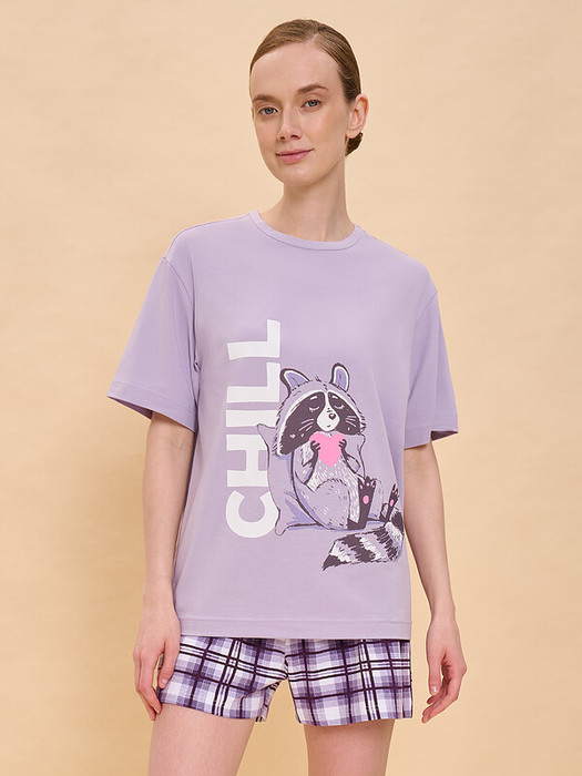 Пижама женская с шортами. В составе ткани преобладает высококачественный хлопок — комплект для сна мягкий, гипоаллергенный и хорошо пропускает воздух. В хлопковой пижаме вам будет комфортно и уютно во время сна. Эластан помогает модели надолго сохранить первоначальную форму. Футболка свободная, плечо спущено, рукава широкие — в пижаме очень удобно спать. В поясе шорт мягкая и широкая резинка — не перекручивается и не давит. Отделка горловины из эластичной рибаны — она не растягивается, пижаму удобно надевать и снимать. Хлопковая пижама украшена милым, «няшным» принтом в виде забавного енотика с подушкой, надпись переводится: «расслабься, отдохни» — поймайте позитивное настроение! Шорты в клетку. Пижамный костюм неприхотлив в уходе. Принты эластичные и прочные, без проблем переносит частые стирки. Милая пижама подходит как для сна, так и просто для отдыха дома, пижамной вечеринки. Помните о правильном уходе за изделием: рекомендуется стирать при температуре не выше 30 °C, без предварительного замачивания, с изнанки. Это поможет сохранить качество и цвет пижамы на длительное время.