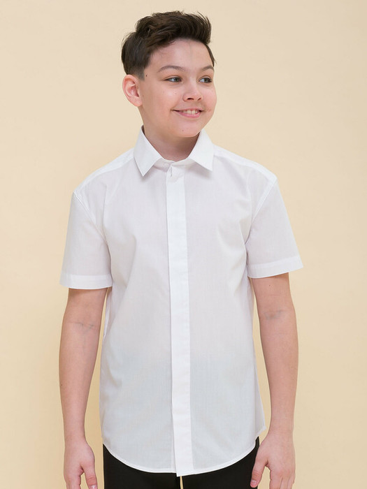 Школьная рубашка прямого силуэта для мальчика. Преобладающий в составе ткани хлопок делает эту модель мягкой, воздухопроницаемой и комфортной для ребёнка. Полиэстер помогает изделию не терять форму и отличный внешний вид. Классическая центральная застёжка на пуговицы скрыта планкой — это придает сорочке элегантной строгости. Модель лаконичного дизайна легко сочетать с различными брюками, пиджаками, жилетами. Красивая и практичная сорочка — подходит как для повседневной носки в школу, так и для более торжественных случаев. Идеально белый цвет без желтого и серого оттенка.