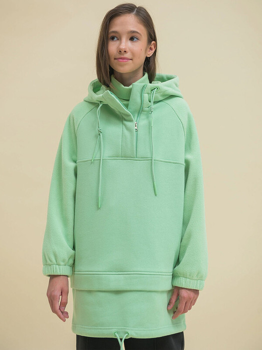 Худи для девочки удлинённое. Туника выполнена в сочетании двух материалов: футера с начёсом и мягкого флиса. Сочетание разных материалов в одном изделии — один из главных трендов сезона. Капюшон и рукава из уютного флиса, перед и спинка — из тёплого футера с начесом. Худи детское модного оверсайз-силуэта с рукавами кроя реглан подарит ребёнку свободу движений и ощущение комфорта. Высокий воротник защищает шею от холода и ветра. Капюшон двухшовный, это обеспечивает анатомически правильную форму и комфортную посадку по голове. Объём капюшона регулируется декоративным двойным шнуром. В манжетах рукавов комфортная широкая резинка. Застежка спереди на короткую смещённую молнию под широкой планкой — актуальная, стильная деталь. По низу модели оригинальное членение с вшитой горизонтальной планкой — создаётся иллюзия многослойности, будто две вещи надеты одна поверх другой. Это модный тренд. Объем понизу регулируется деворативным шнуром. Худи однотонное, без принта. Неприхотливо в уходе. В составе основной ткани преобладает высококачественный хлопок — толстовка мягкая и дышащая. Благодаря полиэстеру она легко стирается и быстро сохнет, не скатывается, не выгорает, сохраняет отличную форму надолго. Капюшон и рукава также выполнены из мягкого и практичного полиэстера. Худи зелёного цвета (трендовый оливковый оттенок). В линейке представлены следующие размеры: 2 (92), 3 (98); 4 (104); 5 (110); 6 (116); 7 (122); 8 (128); 9 (134); 10 (140); 11 (146). Худи с начёсом подходит для девочек дошкольного и младшего школьного возраста, а также девочек-подростков. Отличный вариант для детского сада, прогулок, активного отдыха, дома. Худи с капюшоном можно носить круглый год: прохладным летом, осенью и весной (демисезон), зимой. Чудесный подарок дочери, внучке или сестре на День рождения и любой другой праздник.