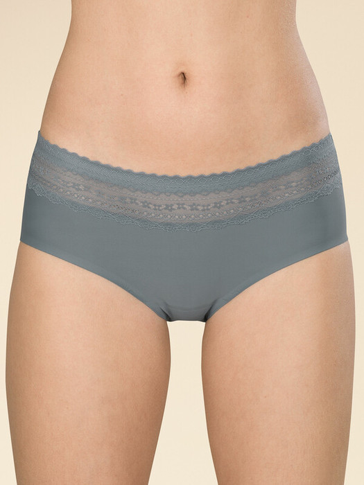 Женские трусы-шорты с низкой посадкой. Изготовлены по бесшовной технологии с минимум швов. Кромки по ноге и по талии подогнуты и приклеены, хлопковая приклеенная ластовица. Нежное геометричное кружево по линии талии высотой 5 см – не передавливает тело и не натирает кожу. Модель оценят те, кто ищет незаметное и невесомое белье на каждый день или особого случая.