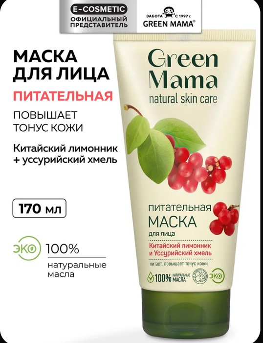 Совместные покупки Тюмень Косметика и парфюмерия Маски для лица — Питательная маска для лица Лимонник и хмель Green mama