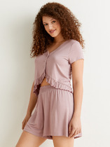 Пижама женская - рубашка приталенного силуэта, с длинным рукавом, круглый отложной воротник пиджачного типа, с застежкой на петли - пуговицы.