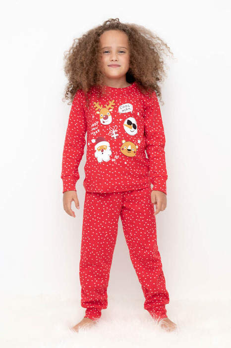 Трикотажный пижамный комплект из натурального хлопка. У джемпера длинные втачные рукава с мягкими манжетами. Брюки с удобным поясом на резинке и эластичными манжетами. Оригинальная набивка и принт выполнены из стойких, гипоаллергенных текстильных красителей. Все трикотажные полотна производятся в соответствии с нормами Швейцарского сертификата ЭкоТекс.
