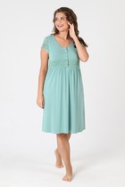 Пижама из гладкокрашеного трикотажного вискозного полотна, состоящая из футболки и брюк. Футболка – с короткими втачными рукавами из кружева и горловиной овальной формы, окантованной основным материалом. На полочке – притачная кружевная кокетка v-образной формы.Брюки – классического покроя, свободные, с эластичной тесьмой по талии.