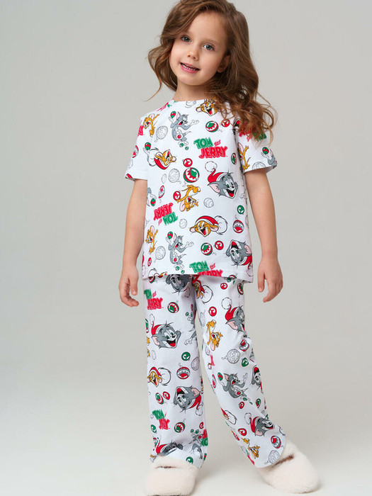 Уютная и яркая трикотажная пижама для девочки с Том и Джерри от PlayToday — лучшее решение для сна и домашнего отдыха.