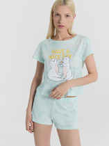 Женская пижама с цветочным принтом: футболка прямого кроя с короткими рукавами, круглым вырезом и рисунком на левом плече, а также свободные шорты с удобными карманами и поясом на резинке.