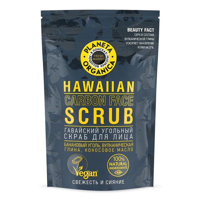 Гавайский угольный скраб для лица глубоко очищает и освобождает кожу от токсинов, защищает от воздействия негативных факторов окружающей среды.