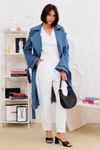 Плащ в длине миди, выполнен из ткани с водоотталкивающей и грязеотталкивающей обработкой. Силуэт слегка расширенный к низу. Отложной воротник с цельнокроеной стойкой. Центральная застёжка на петли и пуговицы. Спереди функциональные карманы-листочки. Рукава кроя реглан, по низу обработаны паты с застежкой на пуговицы. Спинка со средним швом со шлицей по низу. Плащ на подкладке.