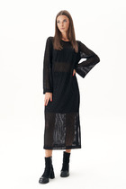 Платье из кружевного полотна свободного силуэта на подкладе из креп шифона с притачной оборкой по низу.