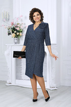 Элегантное нарядное платье, выполнено из роскошной струящейся плательной ткани с добавлением вискозы. Платье с имитацией запаха по переду, отрезное по линии талии. В боковом шве платья потайная молния застежка. Рукав цельнокроеный, спущенный, длиной до локтя. Спинка платья отрезная по талии, с резинкой. В комплекте идет съемный пояс, декорированный пришивным украшением, с резинкой и застежкой на пуговицы в цвет платья. Модель удобная и практичная, вы будете в нем выглядеть неотразимо и нарядно.
