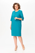 Платье прямого, свободного силуэта, отрезное по линии талии с кулисой, со спущенной линией плеча и патами фиксируемые на петлю и пуговицу посередине шва. Степень прилегания по линии талии и низ фиксируется  окантовочный шнуром.