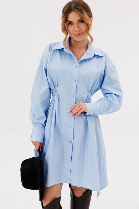 Платье женское А-силуэта, приталенное за счет резинки на кулисе. Рукав длинный на манжете. Низ фигурный.