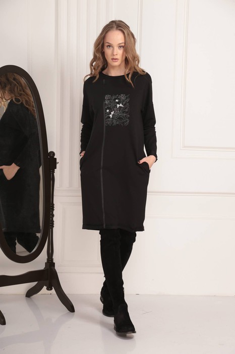 Спортивное платье с дорогой дизайнерской вышивкой на груди. Длина на рост 164-96, рукав от горловины 69 см, 170-102, рукав от горловины 73 см.