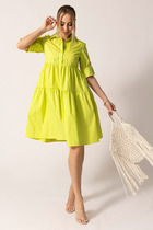Стильное полосатое платье с накладными карманами и застежкой на пуговицы по переду. Подкладка по юбке платья.