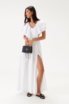 Натуральное платье ришелье на подкладке со сквозной застёжкой по переду на петли и пуговицы.