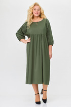 Трикотажное платье средней длины, с красивой горловинкой - стойкой.   Особенно красивый трикотаж - немного меланжевый и имеет еле-заметную  тончайшую люриксовую ниточку, При чем, блеск настолько мягко проигрывается, что очень мало заметен, но в то же сремя придает богатства и эффектого вида изделию. По этому платье прекрасно подойдет для любого случая в жизни.