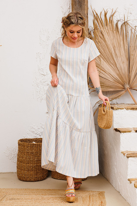 Совместные покупки Тюмень Женская одежда Платья — Платье AMORI 9807 полоска голубая