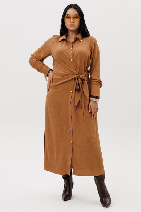 Платье рубашка от бренда «Анастасия» - создано для тех, кто ценит комфорт и элегантность. Изготовленное из турецкой ткани, оно обеспечивает мягкость и легкость при носке. Платье оригинального кроя. Полочка ассиметричная: с одной стороны идет драпировка, переходящая в пояс, со второй стороны: пояс-завязка из бокового шва.  Застежка -планка на петли и пуговицы.  Платье миди дополнено отложным воротником и длинными рукавами на манжете. Платье с пуговицами спереди подходит практически всем. Нарядное платье идеально для повседневной носки и стиля casual кэжуал. Повседневное платье рубашка - необычный вариант на каждый день, для прогулок, встреч в кафе и даже для работы, если позволяет дресс-код. Наряд надевают не только на повседневку, но и на фотосессию, на праздничные мероприятия – день рождения, новый год, новогодняя вечеринка. Модное платье с длинными рукавами можно комбинировать с разной обувью и одеждой для создания молодежных образов. Стильное платье идеально подойдет для повседневных выходов, особенно когда нужно добавить шарма и изящности в ваш образ. Оно также станет отличным выбором для особых случаев, таких как свадьба подруги, новогодний вечер или другие праздничные мероприятия. Универсальная длина миди и классический фасон рубашки делают его отличным выбором как для повседневного, так и для делового образа. Идеальное сочетание стиля и удобства для тех, кто ценит изысканность в каждой детали. Нам важно ваше мнение  отзывы. Длина по спинке (48-52)-125см, (54-58)-126см. Длина рукова с манжетой: (48-58)-63см.