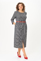 Черное платье миди — не просто одежда, это заявление о вашем стиле и вкусе. Элегантное праздничное платье прямного силуэта из трикотажного полотна. Ткань не мнется. Благодаря своему крою подойдёт для разных типов фигуры. Оно подчеркнёт вашу индивидуальность и станет отличным дополнением к вашему гардеробу. В нём вы будете чувствовать себя уверенно и комфортно, зная, что выглядите на все сто. Выбирая его, вы выбираете качество, комфорт и стиль. Классическое черное платье прямого силуэта, со спущенным плечом. По переду идет подрез с разрезом. В качестве декора по подрезу и низу рукава- металлизированная бахрома. По спинке идет средний шов. Такое платье незаменимая вещь в любом гардеробе. Рекомендуется носить на черное белье. Длина платья по спинке (48-52) - 108см, (54-58) - 112 см. Длина рукава: (48-58) - 24 см.