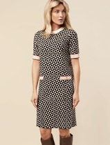 Платье прямого силуэта, длиной за колено, выполнено из вельвета в мелкий рубчик. Полочка платья с отрезной планкой по центру и застежкой на петли и пуговицы. Лиф платья отрезной , со складкой по низу, к срезу которой притачана юбка со сборкой. Полочка лифа с нагрудными вытачками и накладными карманами. Горловина круглой формы обработана воротником-стойкой. Пройма углубленной формы с рукавом рубашечного типа, рукав длинный, одношовный. В боковых швах юбки обработаны карманы.
