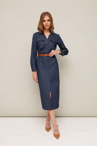 Лаконичное платье длины миди из принтованной плательной ткани завоюет одно из центральных мест вашего гардероба.