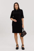 Платье полуприлегающего силуэта, длиной ниже колена, отрезное по талии с фигурной линией подреза – спинка плавно удлинена относительно переда.