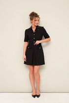 В центре внимания - изысканная архитектура верха: неординарный воротник с застежкой на пуговицу можно заложить строгими графичными складками или же оставить свободно ниспадать, играя с формой. Элегантная драпировка, расходящаяся от пояса мягкими волнами, создает скульптурный объем спереди, превращая лаконичный крой в настоящее произведение искусства. Длинный втачной рукав завершается аккуратным манжетом, подчеркивая аристократичную сдержанность образа.