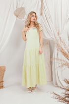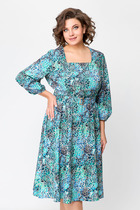Платье прямого силуэта, по переду центральный шов, рельефы, переходящие в бочок. В рельефах рабочие карманы. Вырез горловины округлый. Пройма с притачной фигурной деталью. Спинка со средним швом и талевыми вытачками.