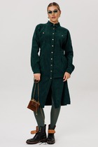 Полуприлегающий силуэт с геометрическими конструкторскими линиями по переду и цельнокроеным рукавам.Нижние боковые детали дополнены пуговицами.Вырез горловины округлый,обработан отделочной деталью.