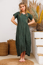 Женское платье из легкой летящей ткани свободного силуэта. Рукав 3/4 со сборкой по пройме и с резинкой по низу рукава. К платью прилагается пояс из той же ткани. Длина платья 126 см