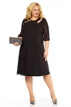 Спинка задекорированна кокетливой шнуровкой для регулировки по фигуре. Застежка на потайную молнию по спинке юбки в среднем шве. Также платье дополнено разрезом по левой ноге.