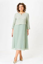 Платье женское из ткани с отделкой из кожзаменителя на хлопчато-бумажной основе, полуприлегающего силуэта с втачным рукавом, с застежкой спереди на планку с пуговицами, с отложным воротником на стойке, с накладными карманами по переду выше линии груди и на линии бедер, под пояс съемный из кожзаменителя. Изделие на подкладке.
