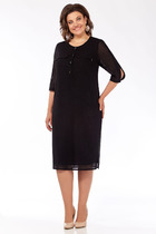 Платье женское свободного силуэта расширенное к низу выполнено из шифона. Перед и спинка с отрезной кокеткой, нижняя часть выполнена из двух деталей внахлёст со складками по верхнему срезу. На спинке "капелька " и застёжка на навесную петлю и пуговицу. Рукава втачные одношовные длиной 3/4 со сборкой на резинку по низу. Круглый вырез горловины окантован. Платье на атласной подкладке от кокетки.
