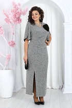 Элегантное платье с красивым декольте с мерцающими кристаллами придётся по душе ценителям нежного и женственного дизайна. А также дополнено интересными рукавами-крылышками, придающими романтичное настроение. В среднем шве спинки обработаны застёжка на навесную петлю-пуговицу и шлица. Модель выполнили из приятной немнущейся ткани, красиво струящейся во время носки. Прямой крой позволяет носить изделие как свободным, так и подчеркнув талию поясом-завязкой. Платье украсит любое событие — от семейного торжества до романтического вечера, а его уникальный дизайн всегда будет выделять его владелицу среди остальных.
