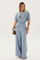 Это платье длины миди расклешённого кроя красиво садится по фигуре и придётся по душе ценителям элегантного дизайна. Модель: с округлым вырезом горловины; застёжкой на петли-пуговицы; с отделочными клапанами по переду; короткими рукавами с интересными отделочными патами и поясом из основной ткани, красиво подчёркивающим талию - сшита из экологичного дышащего материала на основе вискозы со стильным дизайном. Большие накладные карманы добавляют изделию функциональности, а разрезы в рельефах переда и в боковых швах добавляют силуэту динамики.