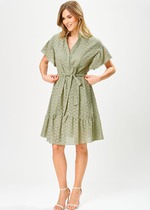 Платье женское, повседневное, полуприлегающего силуэта, отрезное по линии талии, длиной ниже линии колен, из хлопковой ткани. Перед с застежкой на пуговицы. Вырез горловины обработан воротником на стойке. Рукав втачной, по низу обработан цельнокроенной манжетой. Длина по спинке 117 см, длина рукава 16,5 см.