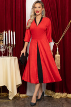 Платье женское полуприлегающего силуэта,выполнено из трикотажной ткани. Застежка центрально - бортовая на петли и пуговицы с отрезной планкой из экокожи и отрезным рукавом.На полочке обработаны функциональные карманы листочка из экокожи.