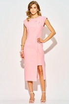 Фаусти – платье прямого силуэта из плательной ткани. Вырез горловины классический овальный, декорирован обтачкой контрастного оттенка. Рукава 3/4, декорированы широкими манжетами. Спереди на кокетке – декоративные пуговицы. В комплекте с платьем поставляется пояс.