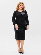 Платье на совмещении тканей из  мягкой эластичной с люриксом, люрекс не колется, по переду вставка ткань с эффектом травки - тренд сезона осень/зима. Элегантное, для любого мероприятия. Благодаря стильному, локоничному дизайну и приятной фактуре материала станет для Вас одним из самых любимых платьев. Силуэт полуприлегающий, со спущеной линией плеча, с длиным рукавом, круглый вырез горловины. Акцент на платье съемный дизайнерский цветок. Спинка лаконичная. Идеально подходит для выхода с друзьями, корпоративов, на работу, театр и повседневной носки.