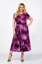 Платье женское из мягкого трикотажного полотна прямого силуэта. Вырез горловины - V образной формы. Рукав отрезной на базе цельнокроеного. По переду и по правому рукаву декоративная вставка из отделочной ткани.