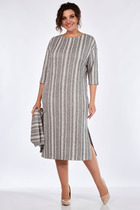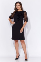 Платье женское двухслойное, расклешеное к низу. Верхнее платье из цветного шифона: перед с тремя застроченными складками у плеча. Рукав втачной, одношовный, снизу на резинке. Горловина округлой формы, проймы маечного типа. Перед с нагрудными вытачками. Нижнее и верхнее платье скреплены по плечу.